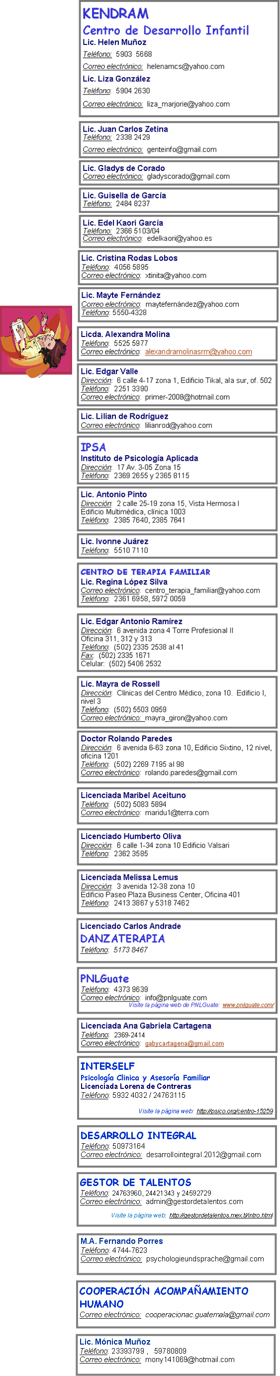 Text Box: Si usted ofrece servicios psicológicos en Guatemala y desea aparecer en esta página, sólo envíe sus datos por correo electrónico.  ES GRATIS.